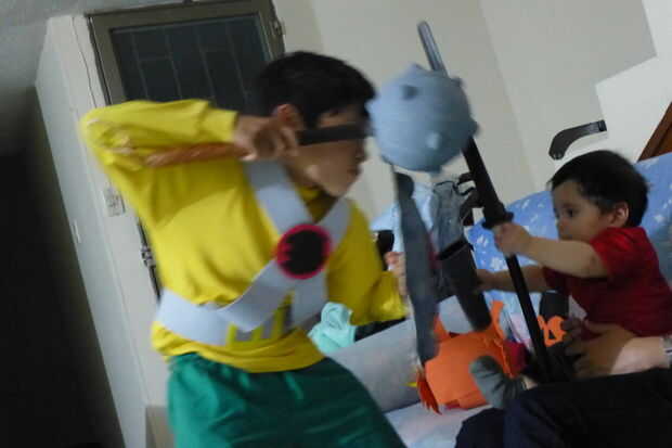 Hace unas semanas el pequeño fue hacia abajo y hacia fuera por un par de días. Pasamos el abajo marathoning tiempo Liga de la justicia en Netflix e hizo camino en Hawkgirl. Preguntó si ella podría hacer un disfraz de Hawkgirl de Halloween y por supue