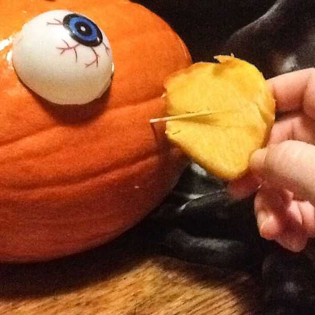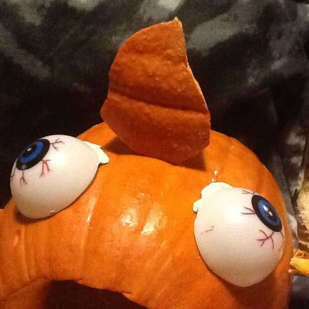 De mis fotos de mes 3 hijos, pensé que sería realmente divertido para jugar del tema "Halloween/octubre".Así que tomé pintura hipoalergénica y pintó a su trasero naranja con un tallo verde.Feliz Halloween de Axel :)