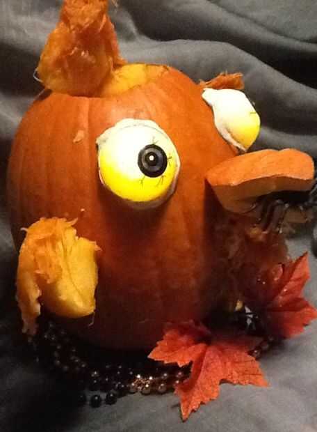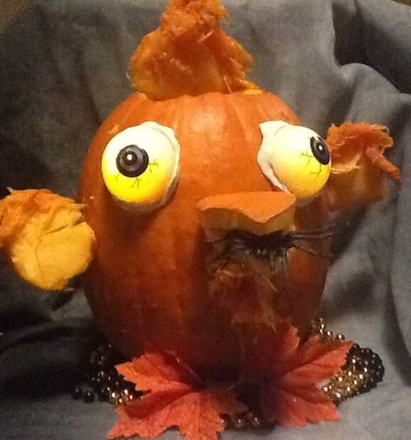 Siempre me gusta añadir un poco humor a mi decoración de Halloween haciendo algo inesperado. Este año yo no tenía mucho tiempo lamentablemente y tuve que simplificar mucho las cosas. Pero mi pececito ha recibido elogios algunos de nuestros visitantes y fue muy divertido hacer algo un poco diferente, aunque no era el trabajo de talla más de la historia.