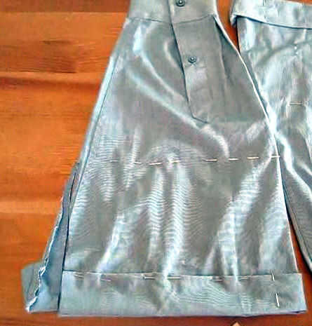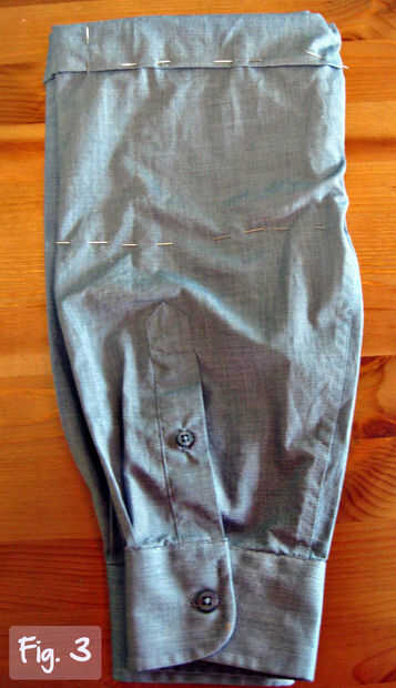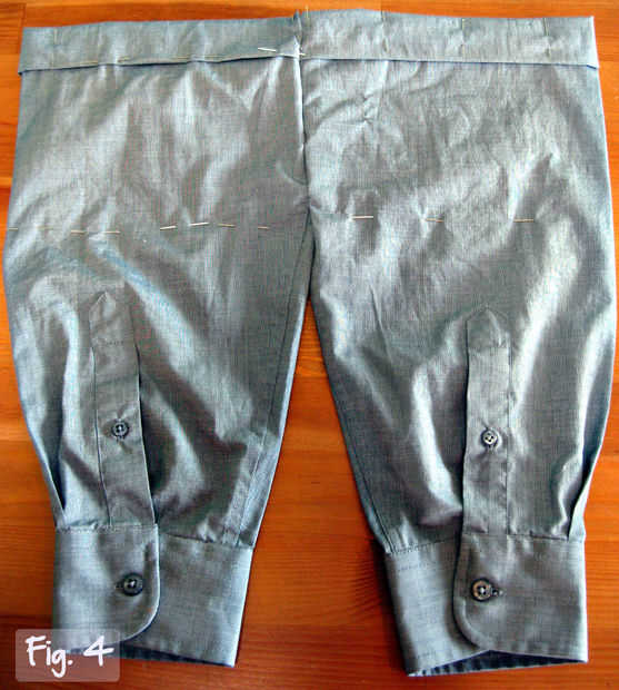No miedo ahora, pero vamos a corte abierto una costura. Esto puede ser realmente divertido. Sacar sus tijeras confianza y comenzar a cortar a lo largo de la parte interior de la manga de la tapa de donde la cintura comenzará a donde terminará la entrepierna (ver fig. 4).