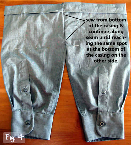 A continuación cose la carcasa - otra vez con un margen de costura de 5/8. Coser a lo largo de la costura, teniendo cuidado de no cerrar la Unión de las dos pretinas - necesita alimentar el elástico a través de esta abertura (ver fig. 5).