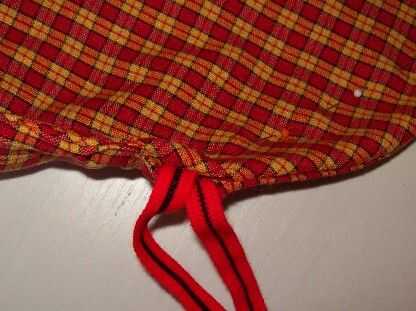 La cinta más larga a través del túnel del hilo de rosca. Nudo o cose los extremos juntos.