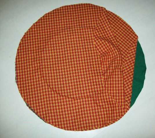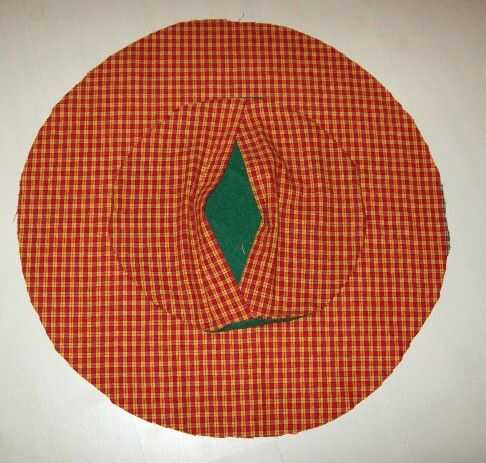 Pin el bolsillo al círculo de algodón grande y coser la parte exterior del bolsillo pequeño círculo, el círculo grande, como cerca del borde del bolsillo como sea posible.