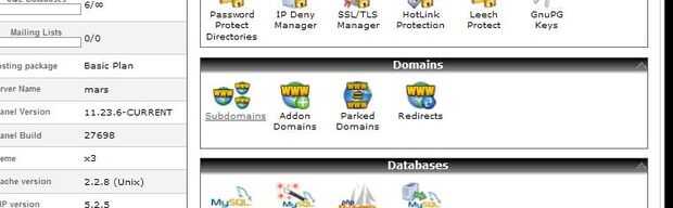 1) vaya a cPanel, desplácese hacia abajo hasta subdominios.