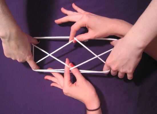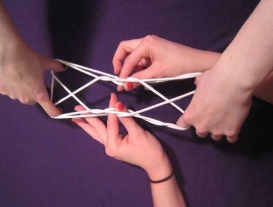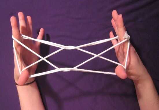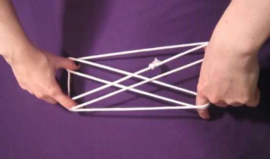 Tu amigo pasa por las mismas acciones que antes: pellizca el conjunto externo de "x" s y les tira hacia fuera, debajo de las líneas en los bordes y por el medio. Ella abre los dedos para tensar la cadena mientras que te dejaron ir y, whoa! Esto no parece el mismo! Eso es porque es el ojo de gato. ¿Cool, derecho?