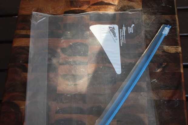 2. agarra una bolsa de plástico de galón y cortar los lados y la parte superior. Colóquela sobre una tabla de cortar y cortar otro o cacerola pesada (para hacer el destrozo).