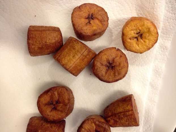 Si se utiliza plátano verde: calentar la olla y esperar hasta que el aceite llegue a 300 F o menos. Fríe sus patacones-ser (también conocido como plátano poco tocones) por 5-7 min en lotes para no bajar demasiado la temperatura del aceite. No necesitan obtener marrón.