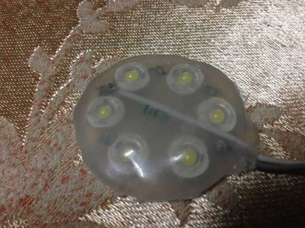 un pequeño pero poderoso con pilas luz de la noche.  Seleccione de modos diferentes de color sólido o disco modo llamativo!  También haría una luz excelente bicicleta.  Construido a partir de 7 LEDs de color y un dot-it.Encontré estos LEDs comprando