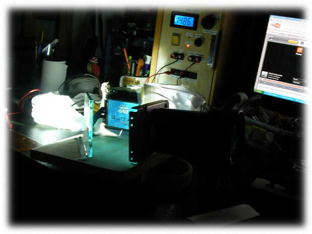 Esta es una foto de cómo decidí colocar todo después de jugar con las distancias. Utilizar dos espejos para hacer la caja lo mas chica posible.
