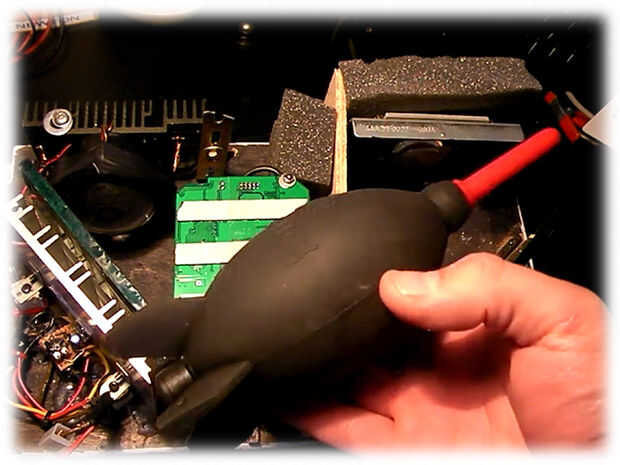 Para limpiar el proyector usa un limpiador de cámaras como el se ve en el video. Te tomara apenas un minuto y ya estará listo para seguir viendo películas.