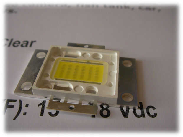 El LED de alta potencia colección ser fijado en un buen disipador de temperatura. El disipador que yo estoy usando esta bien, pero quizas uno un poco mas grande seria incluso mejor. El ventilador es para ayudar al disipador un mantener el LED frío.