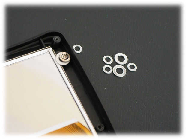 3.-Usa los mismos tornillos sujetaban el circuito para sujetar el LCD con las arandelas.