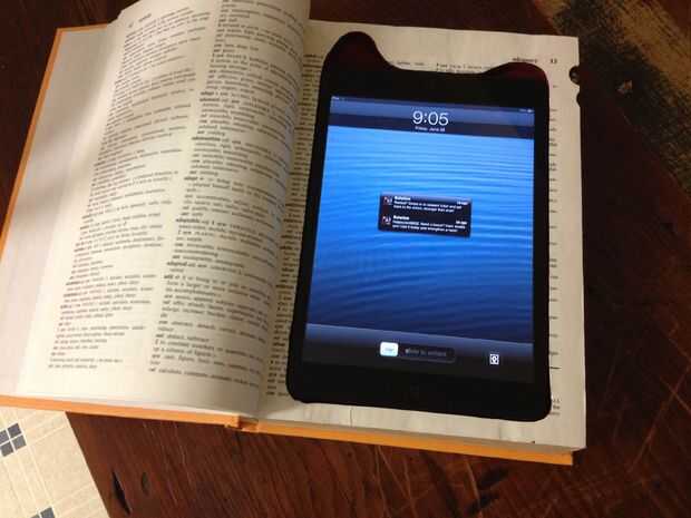 Este es un proyecto fácil y divertido. He estado usando mi libro de iPad para varias semanas y la verdad como él. Es muy ligero, fácil de transportar y cómodo de usar. Mi hijo quería un libro mayor para su iPad, así que utiliza un tesauro. El interior resultó muy agradable.