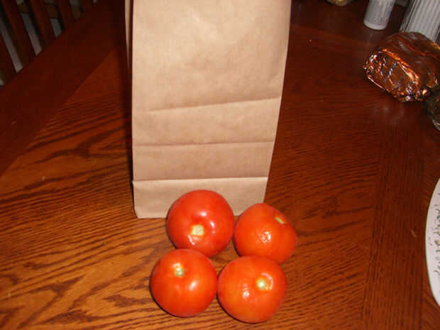 Es demasiado pronto para mí elegir mi tomates aún así que tuve que usar unos rojo para la foto en vez de verde.