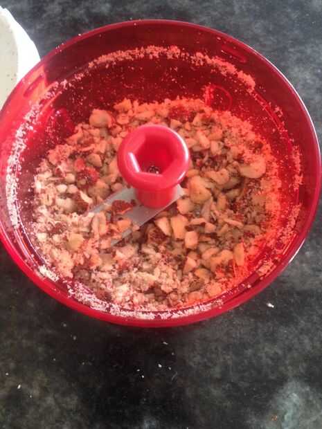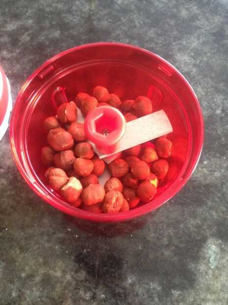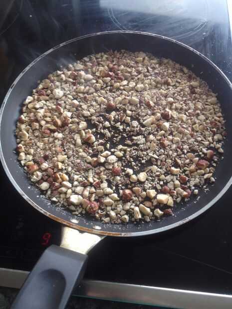 Mezcla de hazelnoten grof zonder ze tot moes te herleiden. Marca ze gedurende 5min en een steelpan.