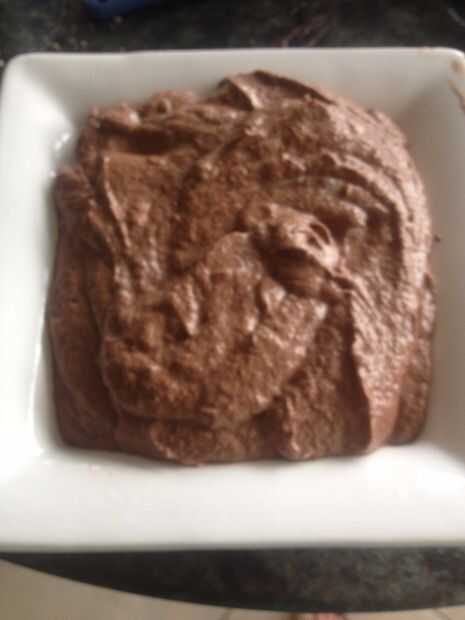 Bereid de slagroom: sintonía de mascarpone op en meng er vervolgens de instalaciones tot slagroom opgeklopte sala onder. LAAT de chocolade smelten en meng dobladillo onder dit roommengsel. Meng krachtig, laat een tijdje rusten op een koele plaats en doe dan este slagroom en een spuitzak.