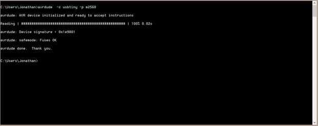 AVRDUDE - c Programador -p m2560 o 1280 dependiendo de lo que tienes