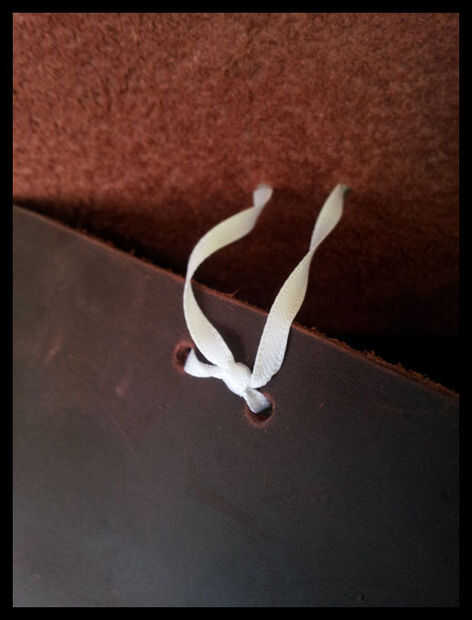 Si vas a cordón su calzado como aquí, usted necesitará hacer dos agujeros para cada lazo y en ambas aletas. Agarrar el trozo de cinta y use un nudo de arrecife para atarla a la aleta inferior, aunque ambos orificios (véase el cuadro) y sus pista de despegue/polainas del cordón hacia arriba, simplemente pase la cinta por los dos agujeros superiores y atar un arco.
