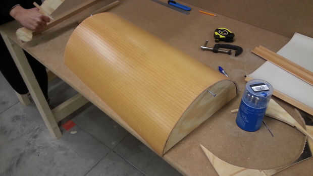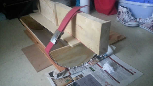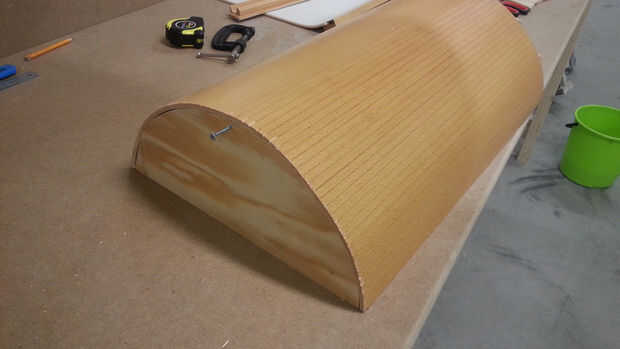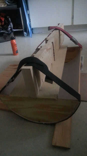 A continuación es el momento de pegar el flexcover en medias lunas pero me di cuenta que sería demasiado inestables para pegar así que atornillado en un palo entre las dos medias lunas para obtener una distancia fija entre ellos para mayor estabilidad.