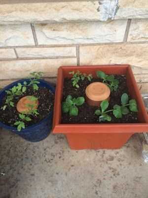 He colocando mis ollas en macetas más grandes para que puedo mantenerme en el porche delantero, pero está bien colocarlas directamente en el suelo si funciona mejor para usted.