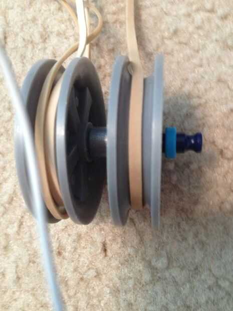 Esto es muy sencillo sólo tienes que seguir las imágenes. Si necesita ayuda pregunte en los comentarios. 1. los titulares de goma ir de abajo a arriba; azul espaciador, separador gris, rueda, rueda 2 esta es la 3 vista frontal es la parte inferior vista 4 se trata de la vista superior. En la caña central hay 5 espaciadores azul a cada lado de la blanca 5 es otro a los 6 de vista frontal es la vista trasera.