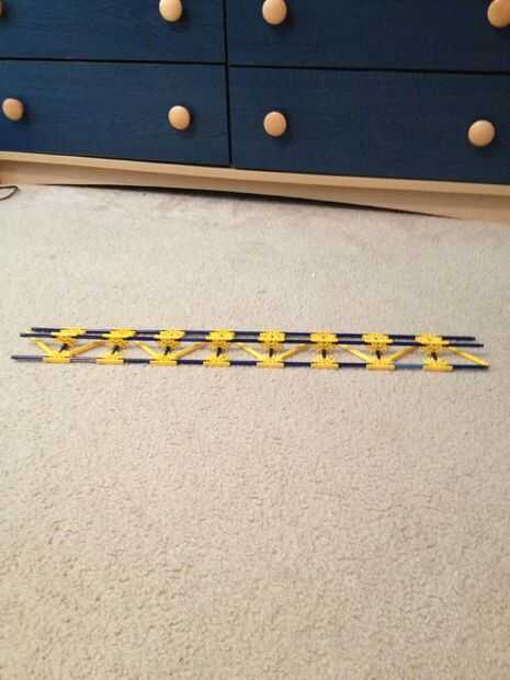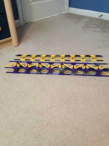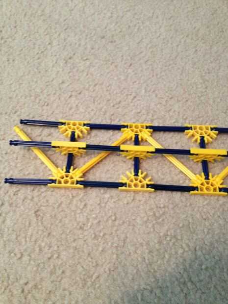 hi this is my old knex high mod jeep. su prety fácil de construir.Paso 1: partespiezas3 conectores y10 barras verdes15 barras blanco9 barras azul3 barras amarillas1 barra roja2 conectores gris6 conecters naranja17 conecters rojo10 conecters amarillo2