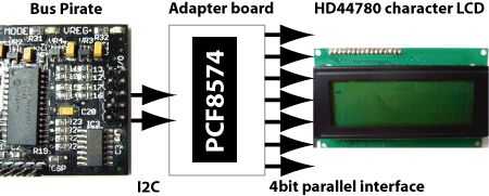 En este artículo describiremos un tablero de adaptador I2C para LCDs basados en el HD44780. Se demuestra con una interfaz serie universal Bus Pirate. El Bus Pirate código fuente de la biblioteca de la interfaz de HD44780 basada en I2C es dominio público, por lo que es libre para adaptarse a sus propios proyectos.