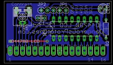 [PNG]. El circuito y el PCB fueron diseñadas con la versión gratuita de Cadsoft Eagle. Los ficheros de diseño pueden ser descargados del Bus Pirate SVN. Antes de usar el tablero de adaptador Asegúrese de verificar la hoja de datos para su LCD contra el pinout del adaptador. No todos LCDs son los mismos.