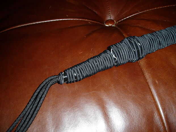 * en esta sección, vas a envolver la empuñadura con cable de descarga... comienzo del nudo constrictor más lejos lejos el lazo... lugar un nudo constrictor en la porción de 11 pulgadas de la manija... envolver, envolver, envolver, envolver firmemente alrededor de la manija de 11 pulgadas hasta el nudo constrictor por el lazo, luego colocar un nudo de constrictor inferior...