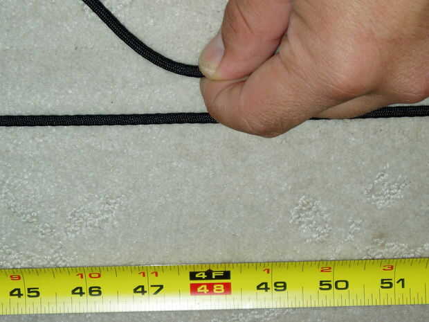 2. ahora, ambas piezas de la cadena de la lámpara de paracord se extienden a la 15' cinta medición de destino...