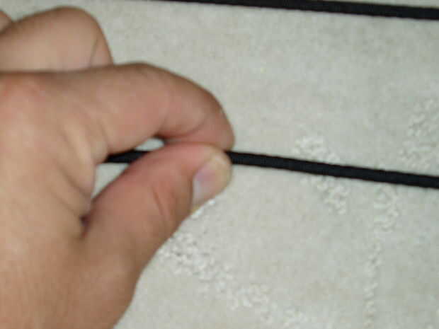 4. Pellizque una de las cadenas de la lámpara de paracord @ exactamente 6' marcador y moverlo hasta el marcador de 4'; ser exactos... alinear estos dos trozos de cadena de la lámpara de paracord juntos...