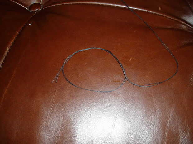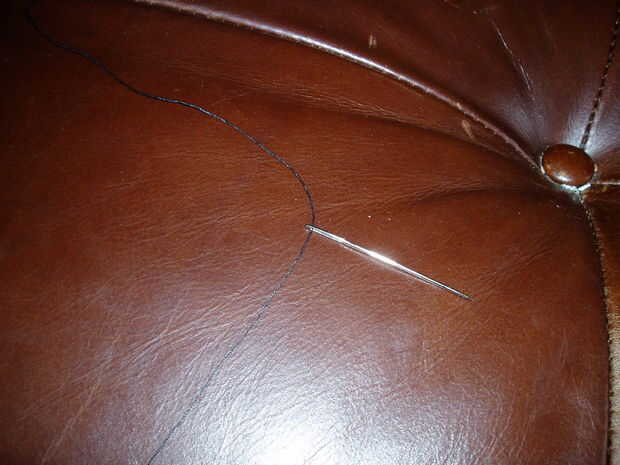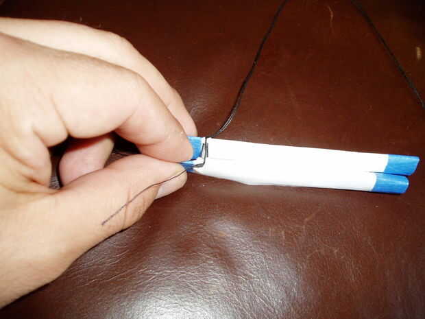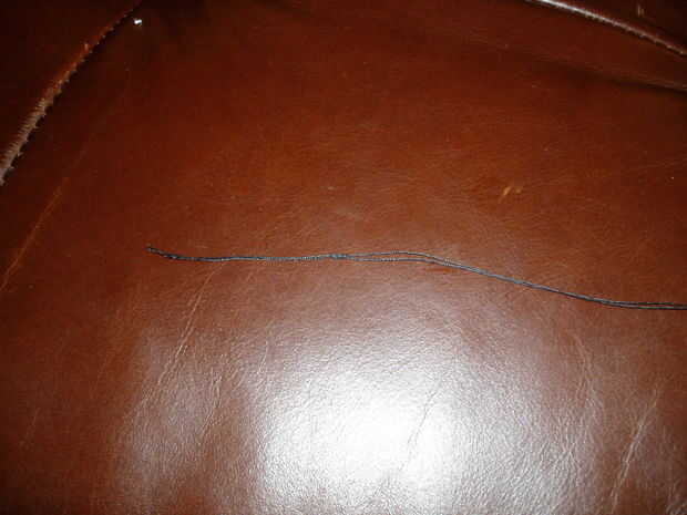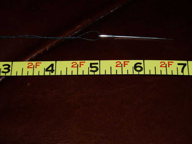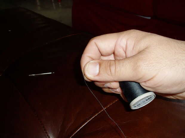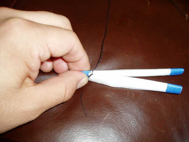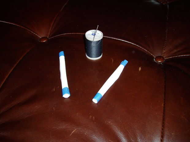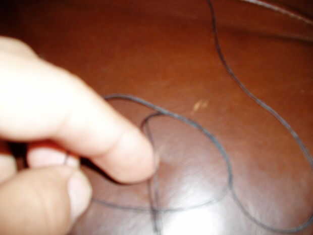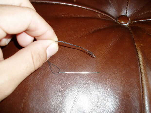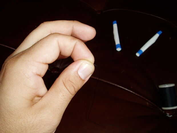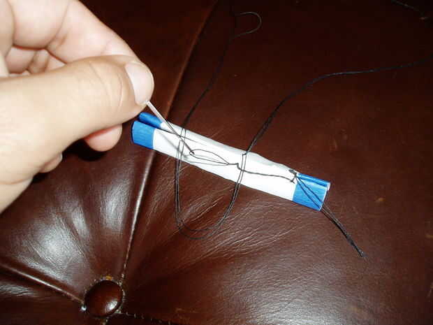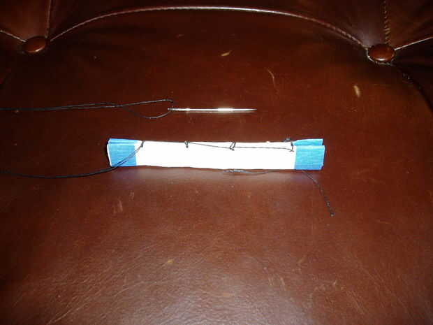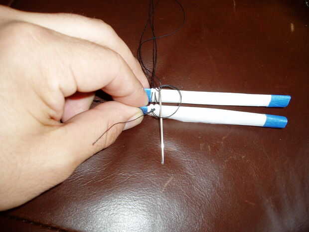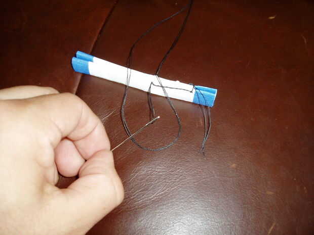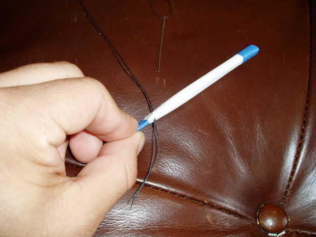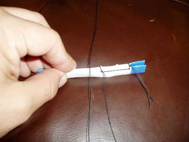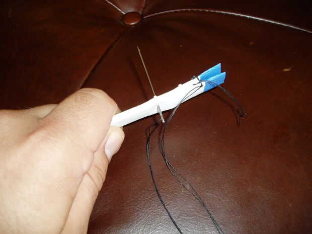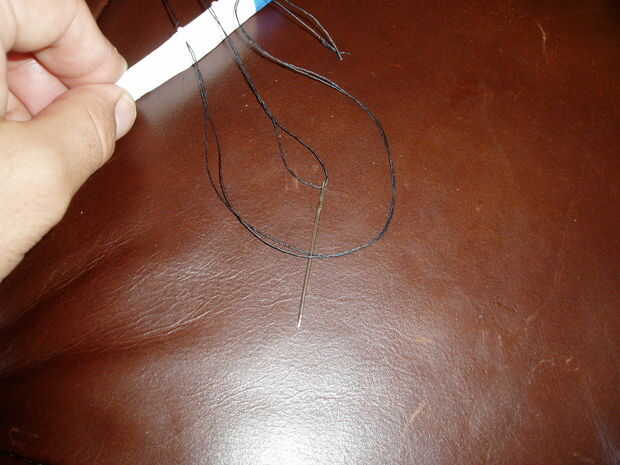 4. la amenaza de la corte y coloque el extremo a través del ojo de la aguja y la necesidad en el medio el hilo...