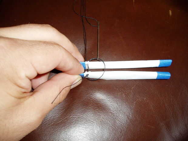 3. sostener el hilo con su derecha y Desenrolle el hilo hasta que los brazos están separados...