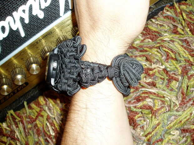 aquí es la pulsera del paracord que llevo todos los días por si pudiera necesitarlo. Tiene más de 10 pies de paracord en él por lo que podría hacer cualquier cosa con él.OK OK por lo que me han preguntado un par de veces ahora en Cómo hice esto, no p