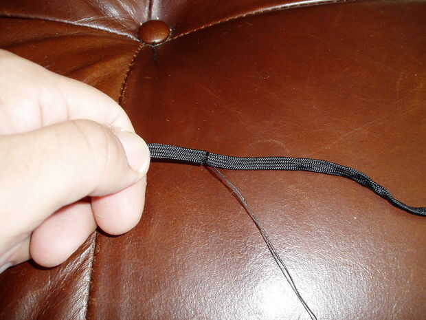 8.1 en caso de tener que conectar corte de paracord, esto es lo que usted do...use necesita del hilo de rosca, superposición de los dos diferentes piezas de paracord y coser...