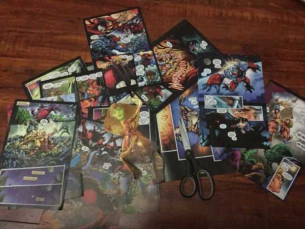 Cortar tus piezas favoritas para hacer tu collage. Unte una fina capa de mod podge a la botella o la parte posterior del cómic cortar. Ahora para obtener esos bordes redondos obstinadas hacia fuera, corte la imagen en unas pocas piezas para que se pegue con menos arrugas.