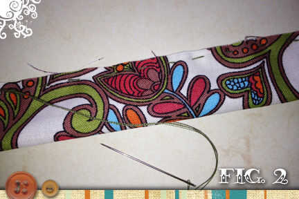 Tomar una de las tiras y doblar la tela de ancho mitad sabia y coser una puntada de recogida en la parte inferior sin terminar de la tira.