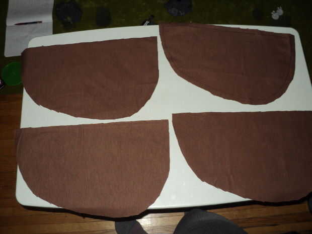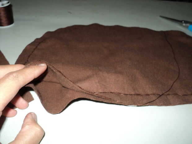 - Coser una línea alrededor de 1/2 cm desde el borde de la tela, la forma más alrededor del círculo semi pero no totalmente alrededor. (ver foto 2)