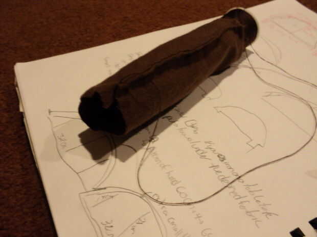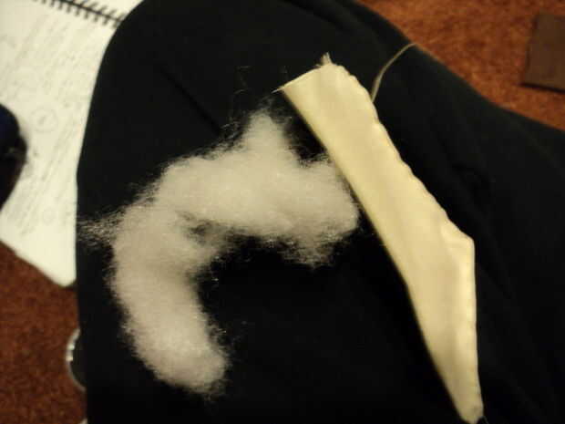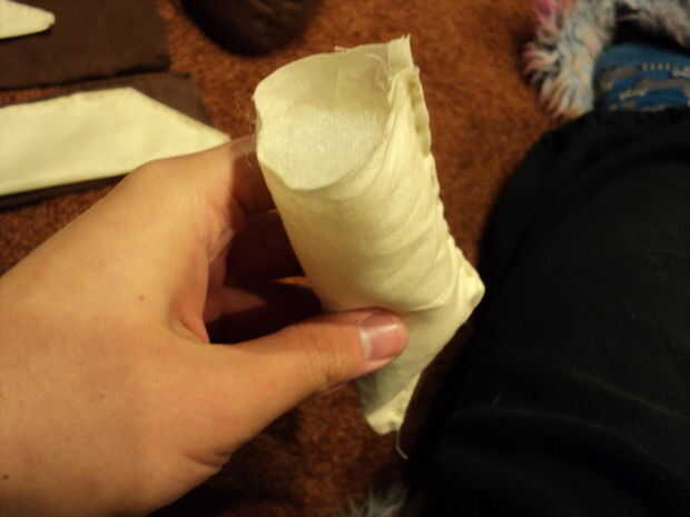 5) coser los bordes juntos (ver foto 4) [Nota: usted puede voltear la tela de dentro hacia fuera así que hay no tan sensible de la costura, es decir más bonito. no hacerlo porque pensaba que de él más adelante]