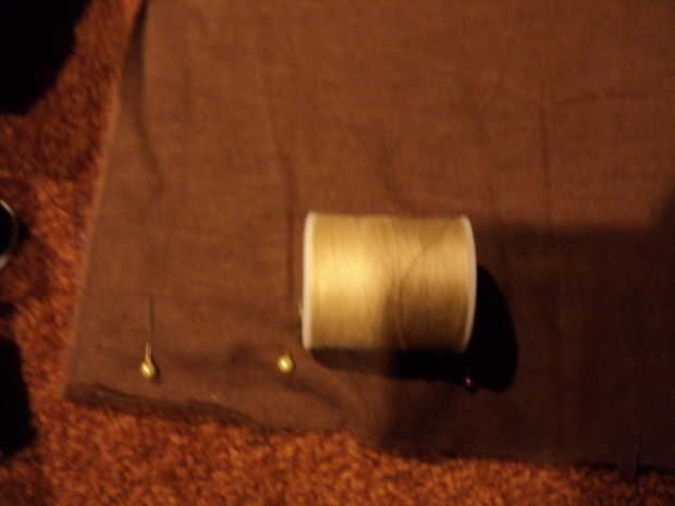 2) desde el borde de la tela, enróllelo en el carrete hasta que haya cubierto, marca con un alfiler, (Foto 2) por lo que hace un rectángulo / cuadrado