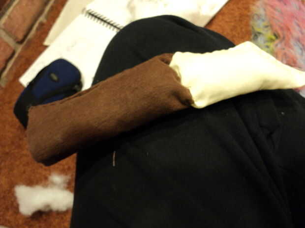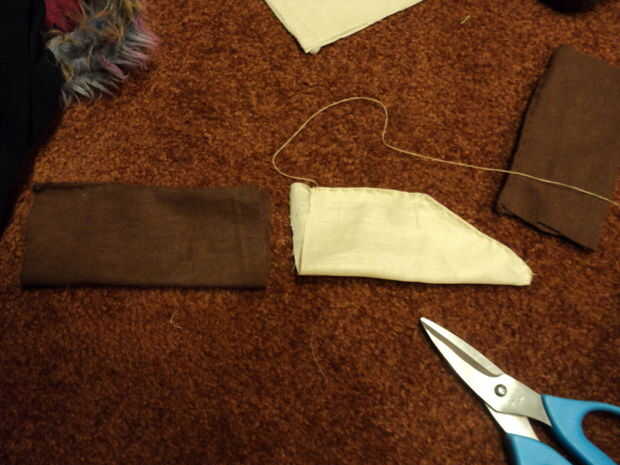 10) tomar el hilo marrón y en el interior de la espiga, coser donde la pierna se encuentra con el pico en un ángulo para que las piernas no son rectas y tienen más definición, esencialmente la cosa en su lugar en un ángulo)