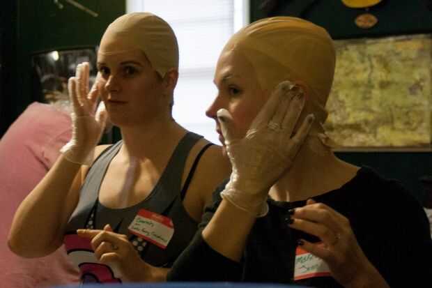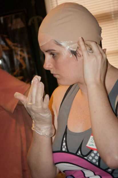 Hacer el "do". Yeso y cabello generalmente no se mezcla. Por lo tanto, poner vaselina o jalea de petróleo en cualquier pelo facial que tienes. (Las cejas, barba, bigote, etc.). Para cabello corto, puedes poner la jalea en eso demasiado. Una gorra de scull trabajará para pelo largo o pelo corto si lo prefiere.