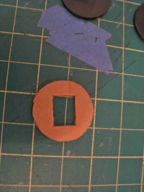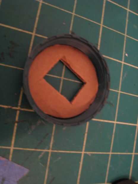 cortar el cartón utilizando el lente de plástico de las gafas protectoras como la plantilla y corte un agujero rectangular de la pieza circular de cartón. Esto sirve como un telémetro para el ojo, para obtener un sentido de lo que es en la visión. Este paso es opcional.