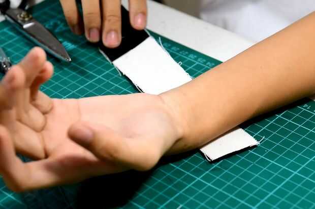 El primer paso en lo que el proyecto estaba haciendo una pulsera cómoda de usar. He utilizado un trozo de tela para ello.