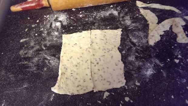 Cuando lo tienes en marcha. Bastante fina.  Corte en una bonita plaza.  Entonces divida para arriba. Usted puede cortar cómo siempre lo desea. La mina en rectángulos porque quería mina bastante grande ya que el hombre disfruta de su comida