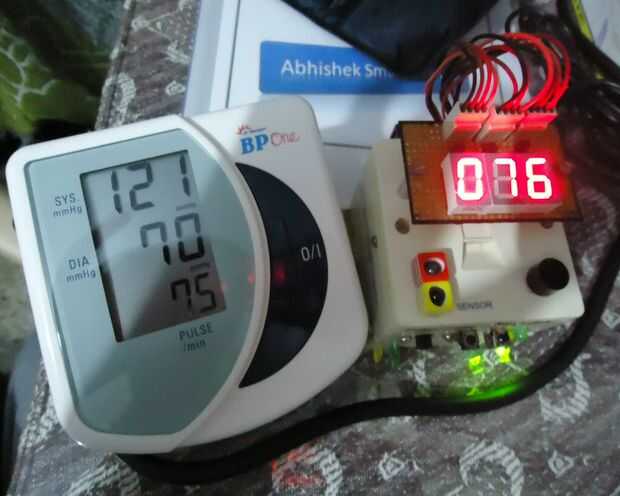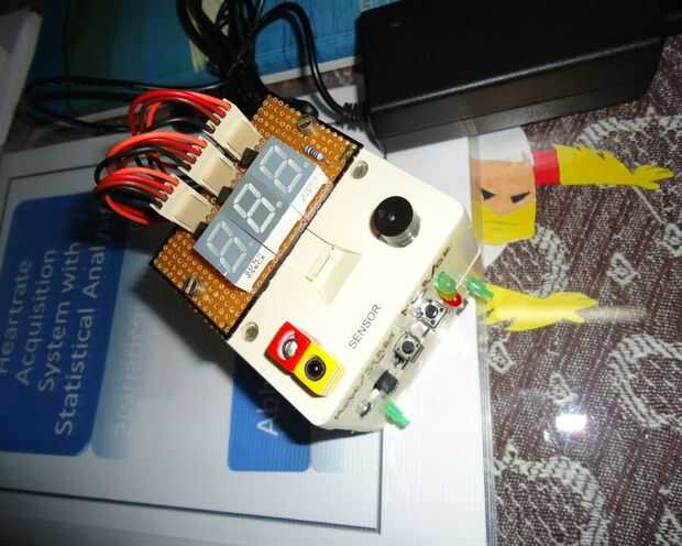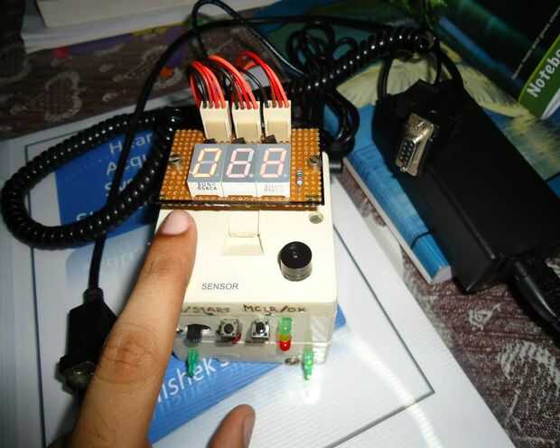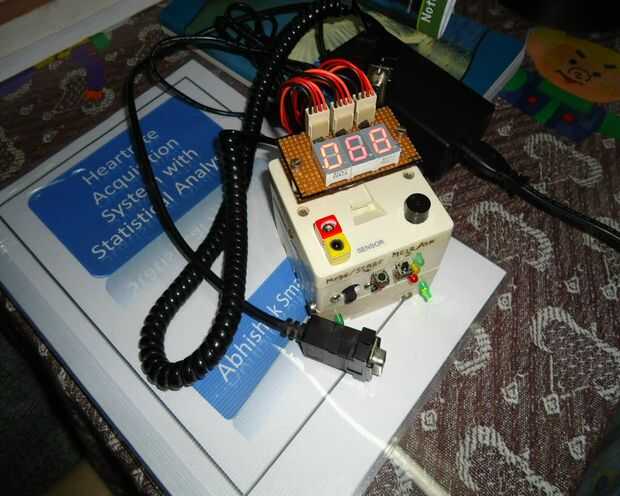 Un monitor(HRM) de pulso es un dispositivo de vigilancia personal que le permite medir la frecuencia cardíaca en tiempo real o grabar la frecuencia cardíaca para estudio posterior. Son muy utilizado por artistas de diversos tipos de ejercicio físico. Este proyecto demuestra una técnica para medir la frecuencia cardíaca detectando el cambio en el volumen sanguíneo en una arteria del dedo mientras el corazón está bombeando la sangre. Consiste en un LED infrarrojo que transmite una señal de IR a través de la yema del dedo sobre el tema, parte de la cual se refleja en las células de la sangre. La señal reflejada es detectada por un sensor de diodo de la foto. Los ccolgante volemia con latido resultados en un tren de pulsos en la salida del diodo de la foto, la magnitud de que es demasiado pequeña para ser detectado directamente por un microcontrolador. Por lo tanto, dos etapas de alta ganancia, filtro pasa bajos activo está diseñada con dos amplificadores operacionales (OpAmps) para filtrar y amplificar la señal a nivel de voltaje adecuado para que los impulsos pueden ser contados por un microcontrolador. El ritmo cardíaco se muestra en una pantalla de siete segmentos de 3 dígitos. El microcontrolador utilizado en este proyecto es AT89S52 es decir una serie de 8051 de Atmel.