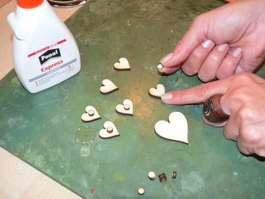 Para un mejor manejo, pegue botones pequeños en los corazones.