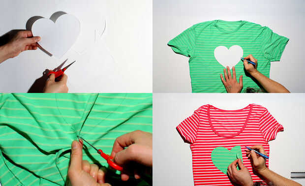 2. Con la ayuda de la regla encontrar el centro de la camisa y coloque el corazón en él y trazar cuidadosamente el contorno.