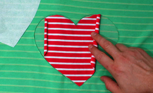 1. Coloque el corazón en la camiseta. Ambos pedazo debe ser con lado incorrecto para arriba! Si equivocamos (como yo) entonces tratar de encontrar las marcas de bolígrafo.