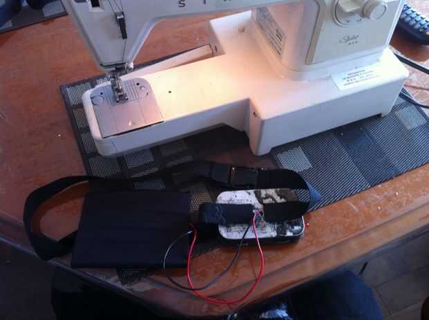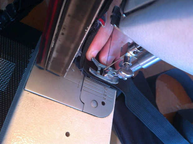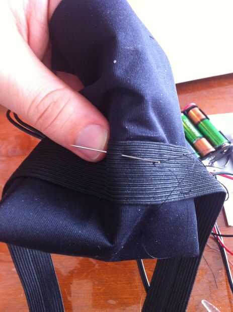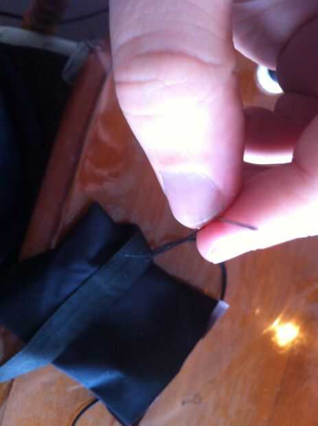 Y comience a coser otra cepa trenzada alrededor de los cables de la correa para ocultarlas.